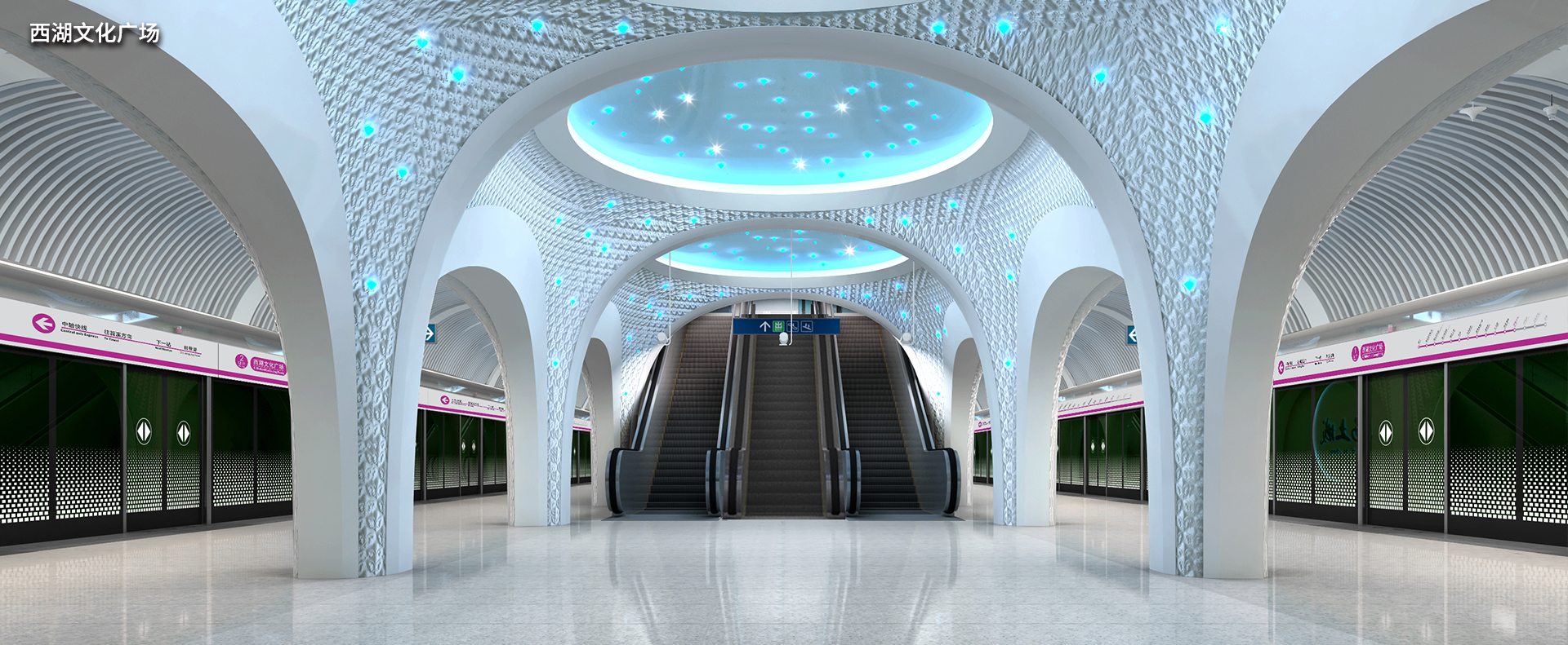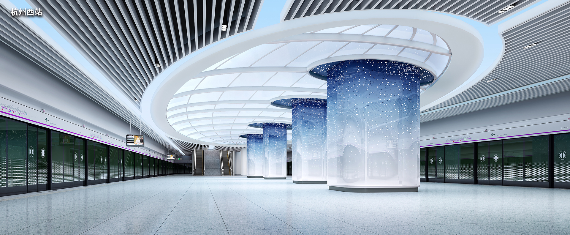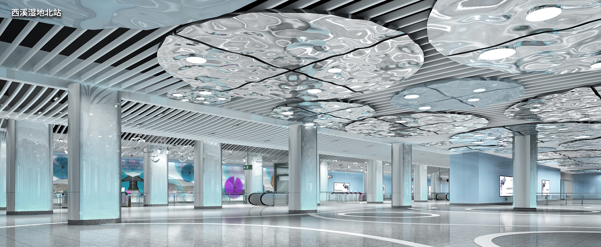 杭州地铁19号线,作为城市东西交通的“大动脉”,西起余杭区苕溪站,贯穿多个核心商务区、大型交通枢纽、国家级公园及科技创新高地。我司非常荣幸能参与这条重要线路的艺术化建设,为多个地标站点量身打造了独具匠心的艺术造型照明系统。例如海创园(原阿里巴巴站)的二进制数字造型灯,呼应了其科创精神;西湖文化广场的钟乳造型灯,诠释了时光与文化的沉淀;西溪湿地站的“莲滩鹭影”主题灯,将自然的静谧与诗意引入地下空间等等。这些作品不仅是照明,更是点亮城市文化的艺术名片。